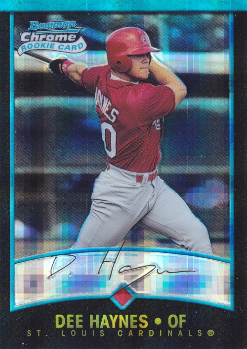 I honestly have no idea who Dee Haynes is. I'm guessing he didn't progress very far in his professional baseball journey. This Bowman Chrome parallel is pretty similar to the X-Fractors you see in the Topps Chrome offerings, but it's not quite the same. It's a bit more disco-y if that makes any sense.