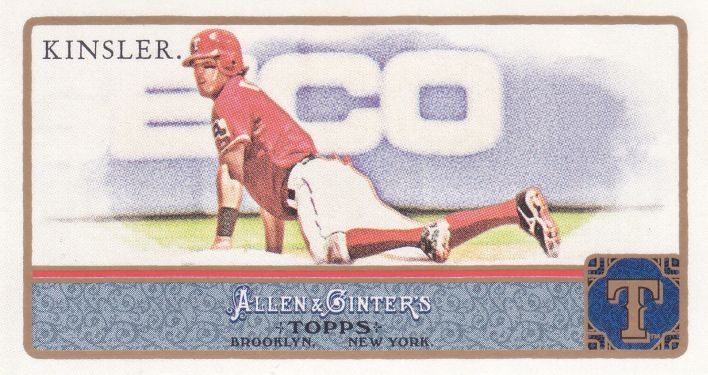 Ian Kinsler was the lone horizontal representative in the stash o' minis, and he gets his own spot here. Insurance ads, partially displayed or otherwise, have no place in this product.